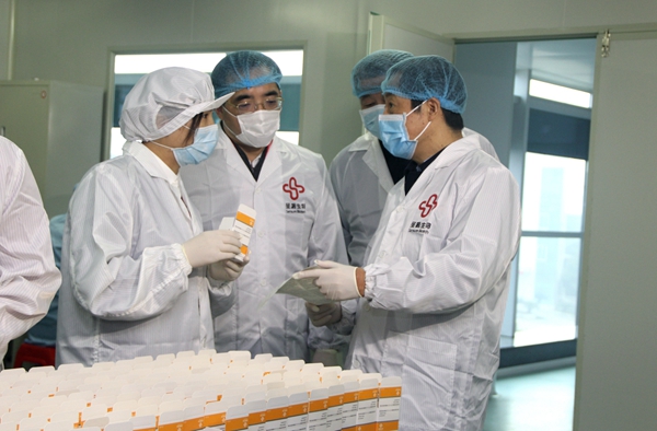 时任湖南省省长、现任湖南省委书记许达哲在抗疫早期调研米兰电竞生物抗疫物资生产情况